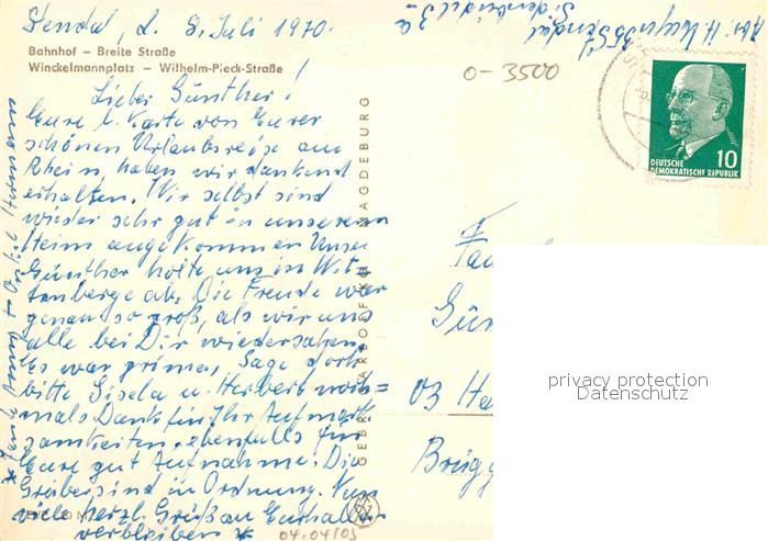 72915019 alte Postkarte Stendal Bahnhof Breite Strasse Winckelmannplatz Wilhelm-Pieck-Strasse postalisch gelaufen Erhaltung siehe scans [LiesaD40] KatCode: 11110015090535