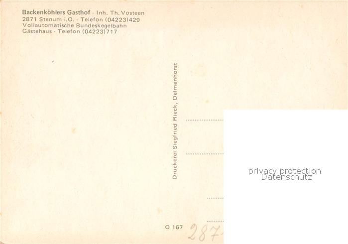 73641927 Stenum Backenkoehlers Gasthof Wildgehege postalisch nicht gelaufen Erhaltung siehe scans [WerneD78] KatCode: 11110003458005