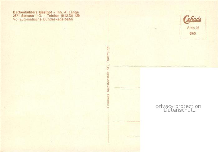 73651906 Stenum Backenkoehlers Gasthof postalisch nicht gelaufen Erhaltung siehe scans [WerneD78] KatCode: 11110003458005
