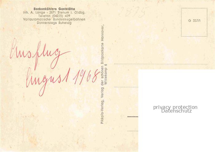 74152241 Stenum Ganderkesee Oldenburg Niedersachsen Backenkoehlers Gaststaette postalisch nicht gelaufen Erhaltung siehe scans [WerneD78] KatCode: 11110003458005