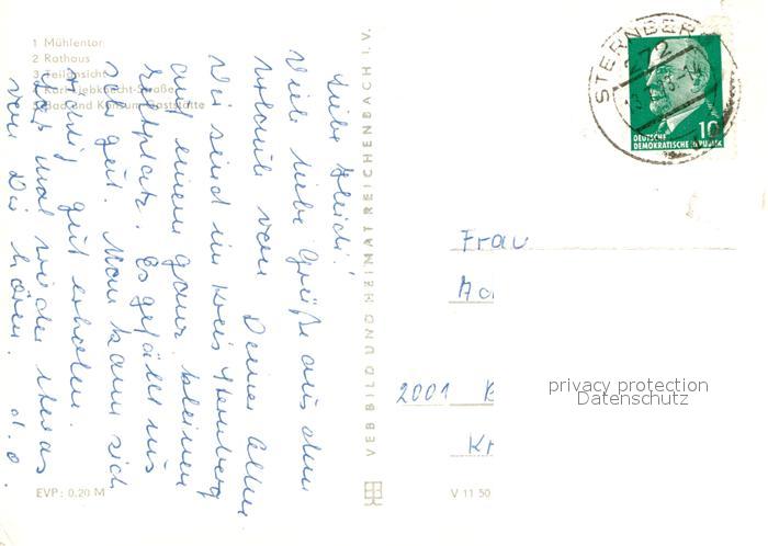 72966654 alte Postkarte Sternberg Mecklenburg Muehlentor Rathaus Teilansicht Karl Liebknecht Strasse Bad Konsumgaststaette postalisch gelaufen Erhaltung siehe scans [FriedD77] KatCode: 11110013060073