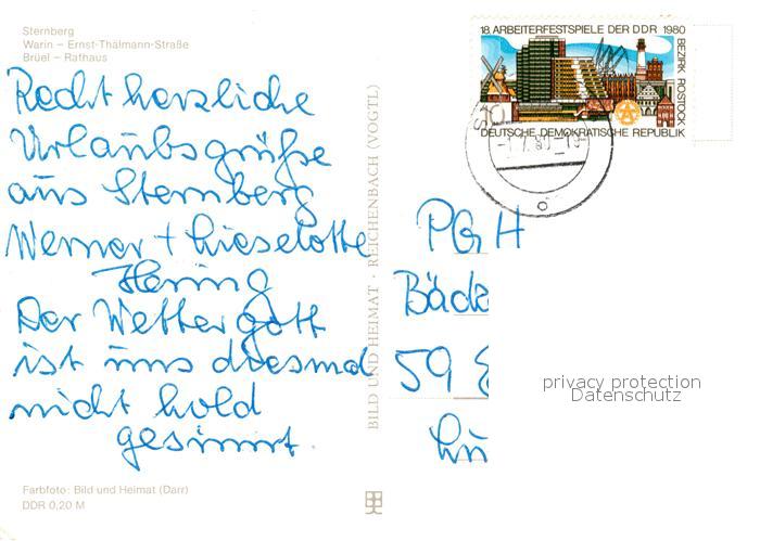 73061270 alte Postkarte Sternberg Mecklenburg Ortsansicht mit Kirche Warin Ernst Thaelmann Strasse Brueel Rathaus postalisch gelaufen Erhaltung siehe scans [FriedD77] KatCode: 11110013060073