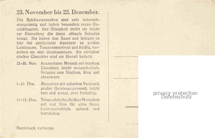 74065464 Sternzeichen Zodiac Sign Signe Zodiaque Schuetze Menschen postalisch nicht gelaufen Erhaltung siehe scans [SanaeD93] KatCode: 22080000001000