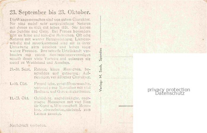 74065462 Sternzeichen Zodiac Sign Signe Zodiaque Waagemenschen postalisch nicht gelaufen Erhaltung siehe scans [SanaeD93] KatCode: 22080000001000