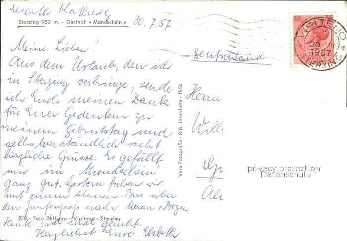 old postcard Sterzing Suedtirol Gasthof Mondschein postalisch gelaufen Erhaltung siehe scans
