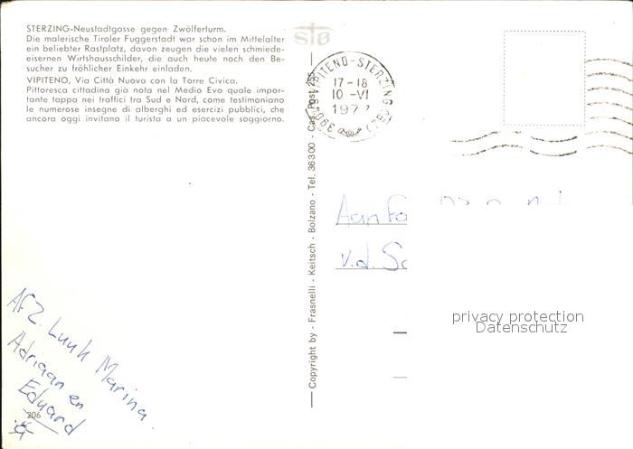 old postcard Sterzing Suedtirol Neustadtgasse postalisch gelaufen Erhaltung siehe scans