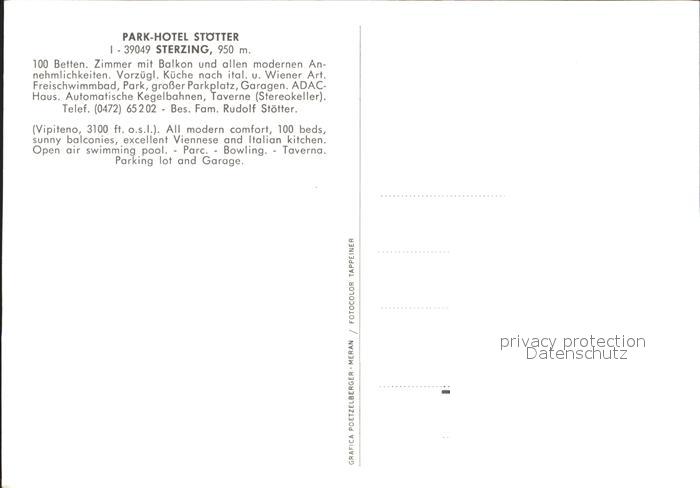Sterzing Suedtirol Park Hotel Stoetter Restaurant Bar Swimming Pool postalisch nicht gelaufen Erhaltung siehe scans
