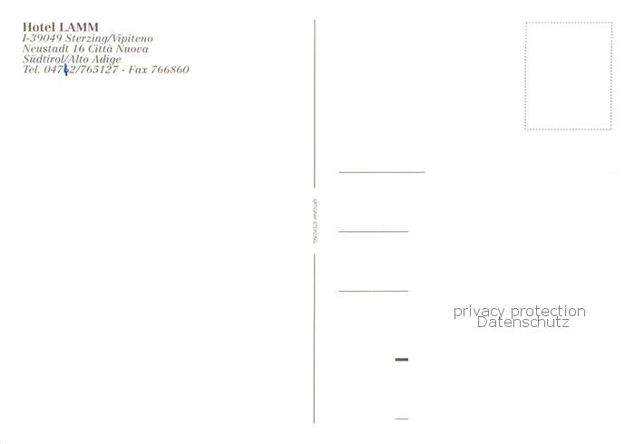 Sterzing Vipiteno Suedtirol IT Hotel Lamm Zentrum Denkmal Stadttor postalisch nicht gelaufen Erhaltung siehe scans [FriedD77]