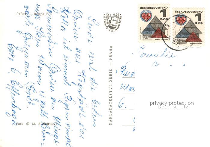 13597892 old postcard Steti Wegstaedtl Schwimmbad Liegewiese postalisch gelaufen Erhaltung siehe scans [WerneD78] KatCode: 11520
