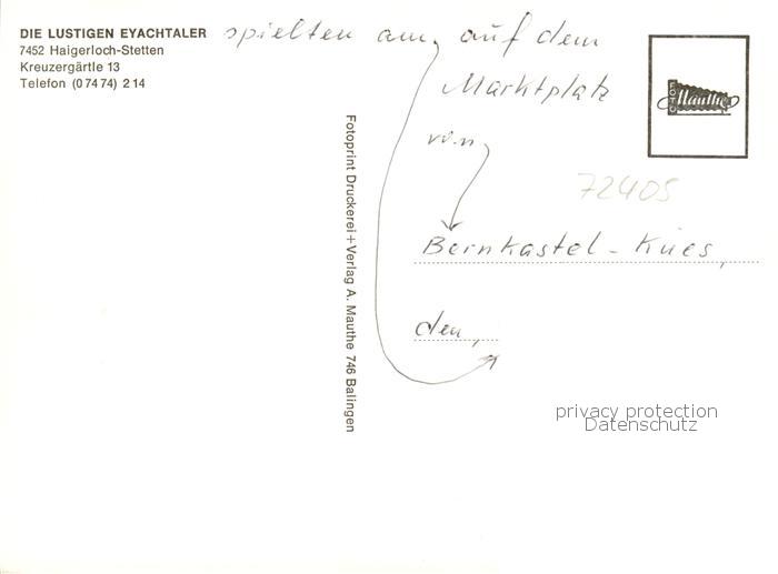 73865643 Stetten Haigerloch Die lustigen Eyachtaler Musikkapelle Trachten postalisch nicht gelaufen Erhaltung siehe scans [FriedD77] KatCode: 11110008417025