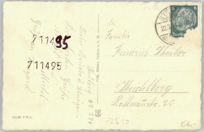 70028147 alte Postkarte Stetten kalten Markt Fliegeraufnahme postalisch gelaufen KatCode: 11110008437107