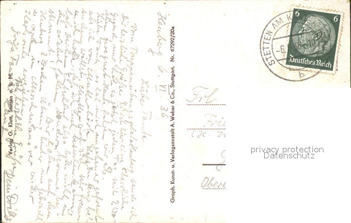 31713972 alte Postkarte Stetten kalten Markt postalisch gelaufen Erhaltung siehe scans KatCode: 11110008437107