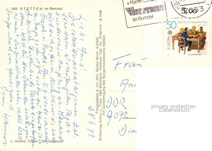 73725635 alte Postkarte Stetten Kernen Fliegeraufnahme postalisch gelaufen Erhaltung siehe scans [WerneD78] KatCode: 11110008119093