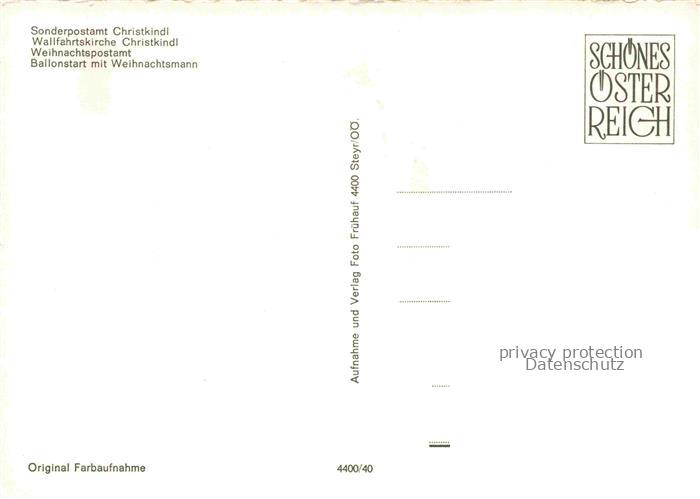 74019312 Steyr Enns Oberoesterreich Sonderpostamt Christkindl Wallfahrtskirche Christkindl Weihnachtspostamt Ballonstart mit Weihnachtsmann postalisch nicht gelaufen Erhaltung siehe scans [FriedD77] KatCode: 11390314040201
