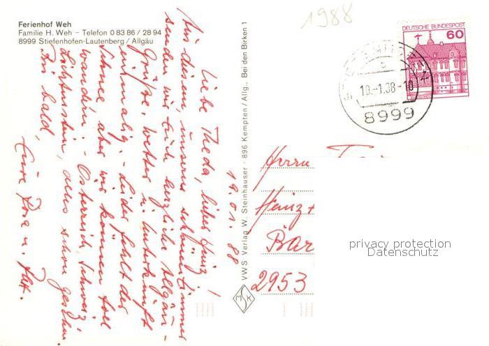 72932232 alte Postkarte Stiefenhofen Lautenberg Ferienhof Weh postalisch gelaufen Erhaltung siehe scans [LiesaD40] KatCode: 11110009776127