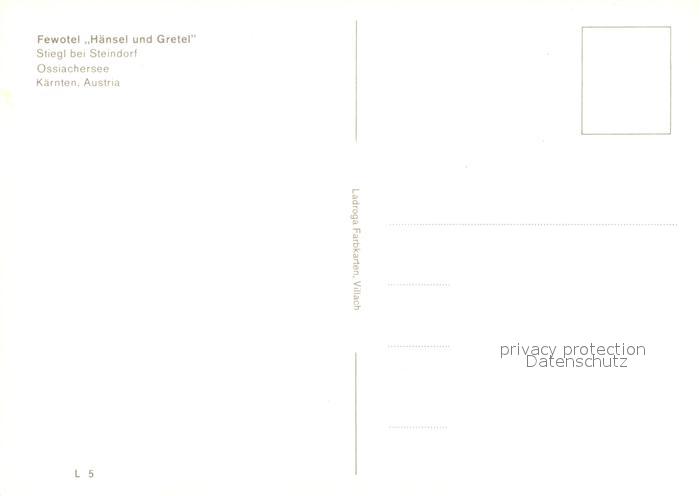 73245801 Stiegl Ossiach Fewotel Haensel und Gretel am Ossiachersee postalisch nicht gelaufen Erhaltung siehe scans [FriedD77] KatCode: 11390212021006