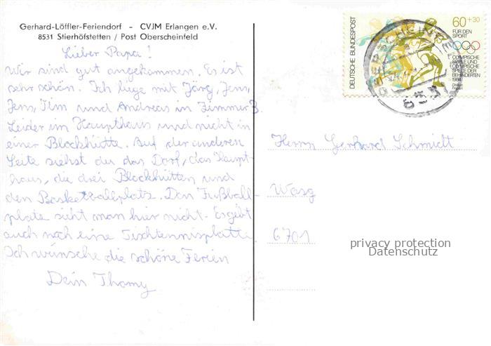 74049944 alte Postkarte Stierhoefstetten Panorama Gerhard-Loeffler-Feriendorf Sportplatz postalisch gelaufen Erhaltung siehe scans [FriedD77] KatCode: 11110009575157