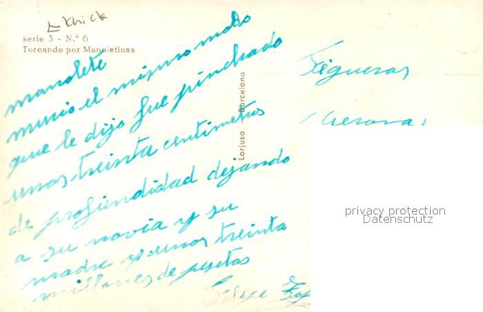 73483698 Stierkampf Toreando por Manoletinas postalisch nicht gelaufen Erhaltung siehe scans [PaolaD17] Paol Katcode 22520000000500