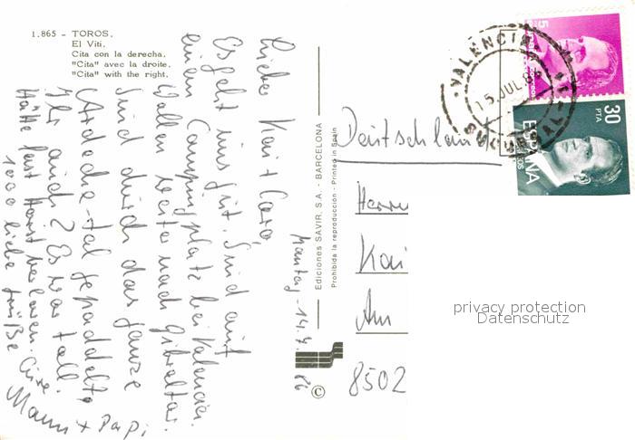 alte Postkarte Stierkampf Toros El Viti Cita con la Derecha postalisch gelaufen Erhaltung siehe scans [PaolaD17]