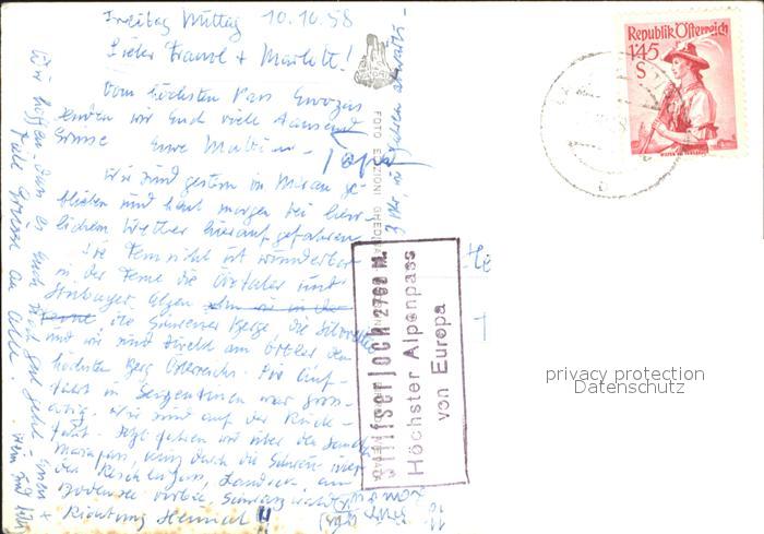 old postcard Stilfserjoch Passo dello Stelvio Passo dello Stelvio postalisch gelaufen Erhaltung siehe scans