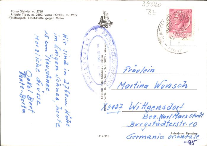 old postcard Stilfserjoch Passo dello Stelvio Passo Stelvio rifugio Tibet verso Ortles Berghuette Ortler postalisch gelaufen Erhaltung siehe scans