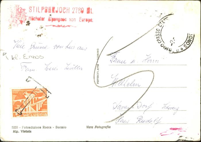 old postcard Stilfserjoch Passo dello Stelvio Strada postalisch gelaufen