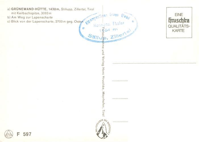 73907782 Stillup Stilluptal Mayrhofen Zillertal AT Gruenewand-Huette Berghuette in den Zillertaler Alpen Gletscher Bergwanderer postalisch nicht gelaufen Erhaltung siehe scans [FriedD77] KatCode: 11390335070920