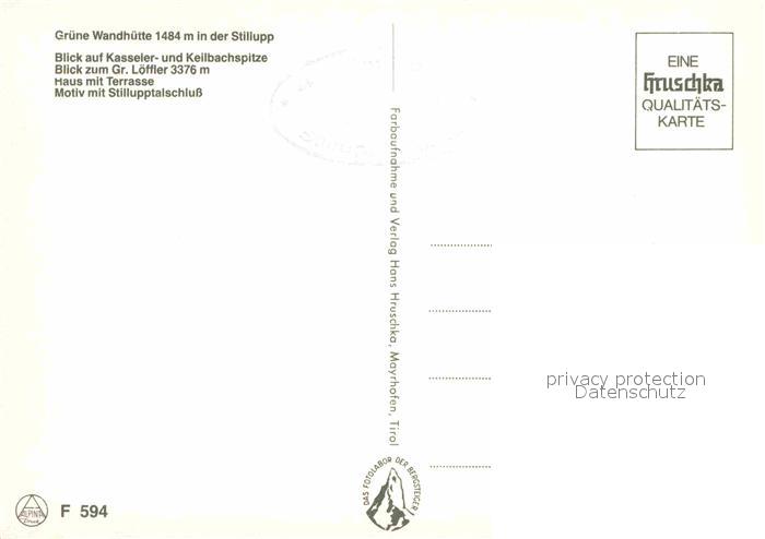 72770991 Stillupptal Gruene Wandhuette Blick auf Kasselerspitze Keilbachspitze Zillertaler Alpen postalisch nicht gelaufen Erhaltung siehe scans [FriedD77] KatCode: 11390