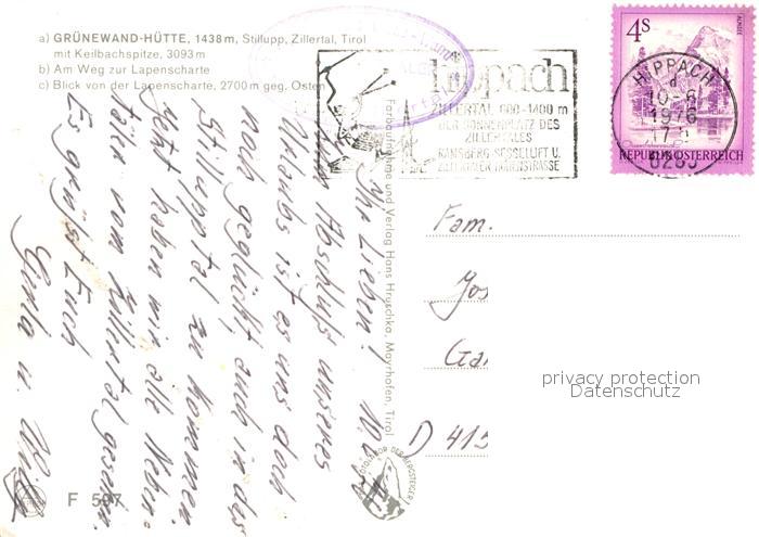 72959597 alte Postkarte Stillupptal Gruenewald-Huette Keilbachspitze postalisch gelaufen Erhaltung siehe scans [NatalD47] KatCode: 11390