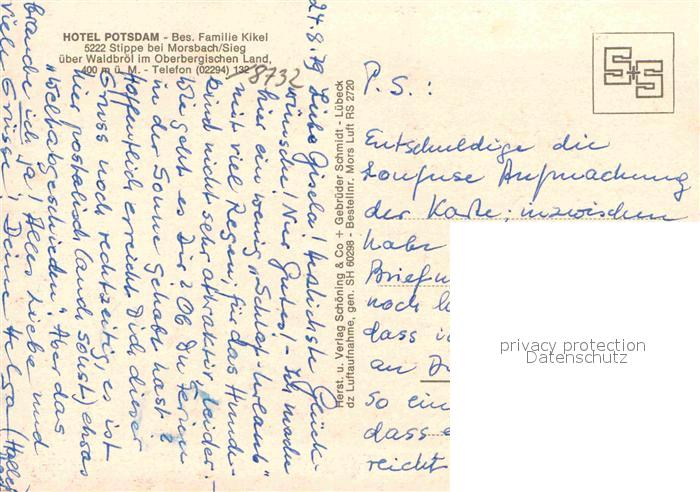 72782743 Stippe Morsbach Hotel Potsdam Oberbergisches Land Fliegeraufnahme postalisch nicht gelaufen Erhaltung siehe scans [FriedD77] KatCode: 11110005374028