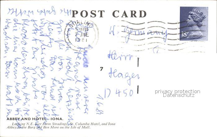 old postcard Stirling Abbey and Hotel Iona postalisch gelaufen Erhaltung siehe scans