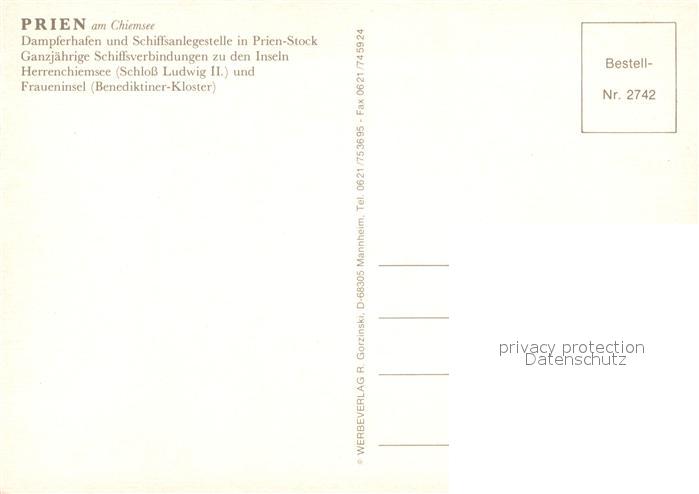 73081089 Stock Chiemsee Dampferhafen Schiffsanlegestelle Fliegeraufnahme postalisch nicht gelaufen Erhaltung siehe scans [FriedD77] KatCode: 11110009187162