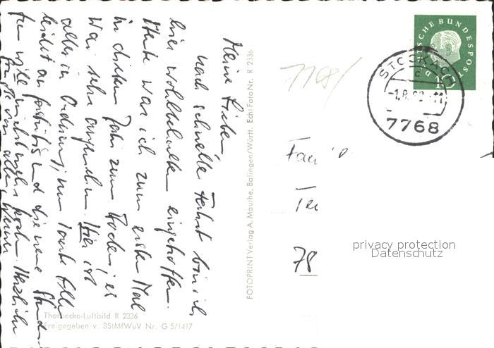 31715237 alte Postkarte Stockach Baden Fliegeraufnahme postalisch gelaufen Erhaltung siehe scans KatCode: 11110008335079