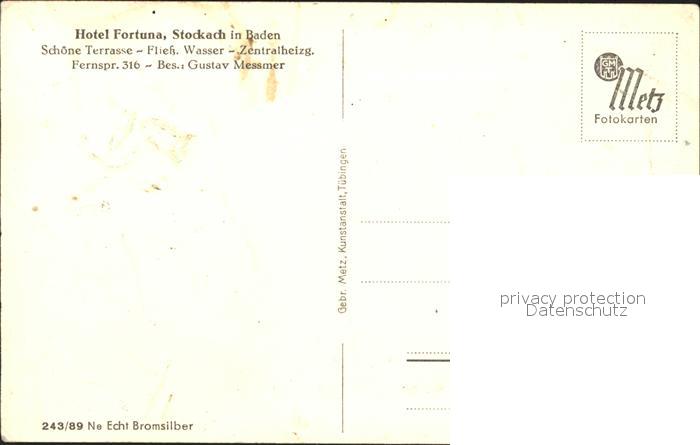 31716806 Stockach Baden Hotel Fortuna postalisch nicht gelaufen Erhaltung siehe scans KatCode: 11110008335079
