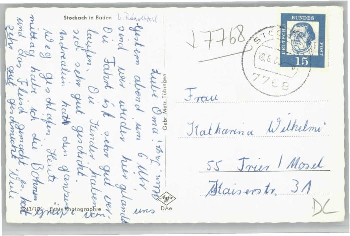 40734007 Stockach Baden KONSTANZ BW postalisch gelaufen Alte Ansichtskarte Postkarte alte Postkarte Katcode 11110008335079