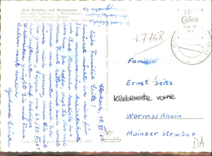 41040063 Stockach Baden KONSTANZ BW Fliegeraufnahme Techniker Werkmeister Institut postalisch gelaufen Alte Ansichtskarte Postkarte alte Postkarte Elvi Katcode 11110008335079