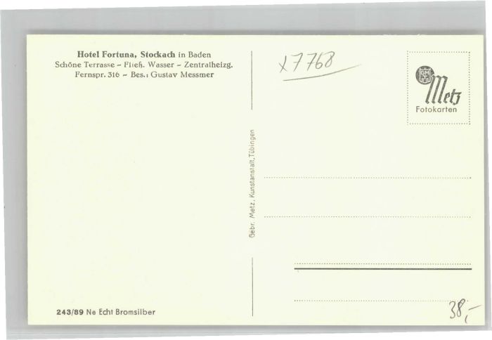 40734057 Stockach Baden KONSTANZ BW Gasthof Fortuna postalisch nicht gelaufen Alte Ansichtskarte Postkarte Katcode 11110008335079