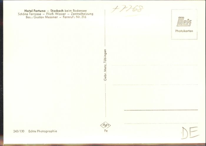 41040065 Stockach Baden KONSTANZ BW Hotel Fortuna postalisch nicht gelaufen Alte Ansichtskarte Postkarte Elvi Katcode 11110008335079