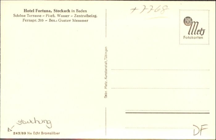 41040118 Stockach Baden KONSTANZ BW Hotel Fortuna postalisch nicht gelaufen Alte Ansichtskarte Postkarte Elvi Katcode 11110008335079
