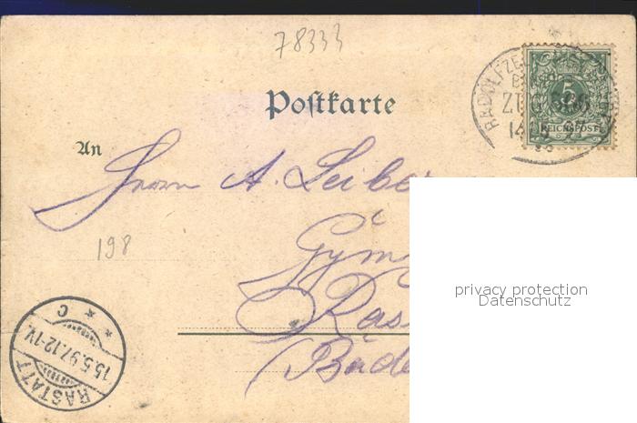 31885088 alte Postkarte Stockach Baden Kriegerdenkmal Nellenburg Litho Bahnpost postalisch gelaufen Erhaltung siehe scans KatCode: 11110008335079