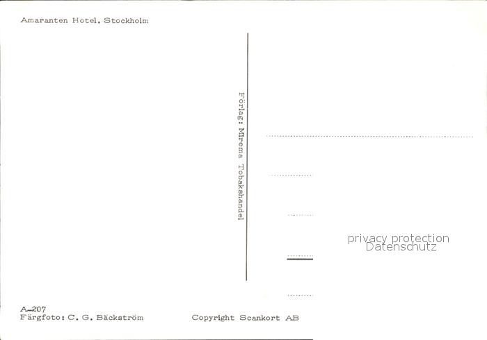 Stockholm Amaranten Hotel postalisch nicht gelaufen Erhaltung siehe scans [LiesaD40]