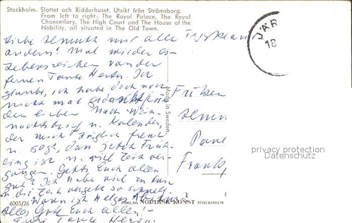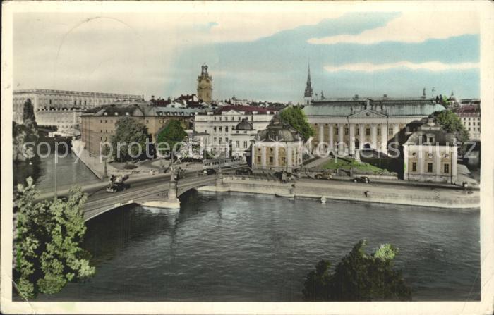 old postcard Stockholm Bruecke Slottet och Riddarhuset postalisch gelaufen Erhaltung siehe scans