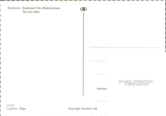 Stockholm City Hall postalisch nicht gelaufen Erhaltung siehe scans