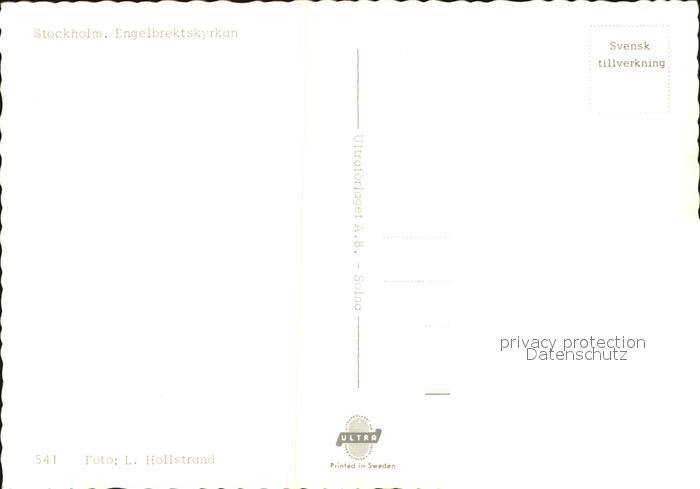 Stockholm Engelbrektskyrkan postalisch nicht gelaufen Erhaltung siehe scans