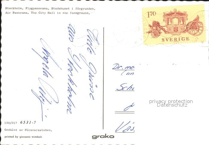 old postcard Stockholm Flugpanorama City Hall postalisch gelaufen Erhaltung siehe scans