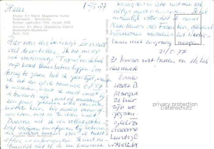 Stockholm Flygvy St Maria Magdalena Kyrka Soedermalm Kirche Fliegeraufnahme postalisch nicht gelaufen Erhaltung siehe scans