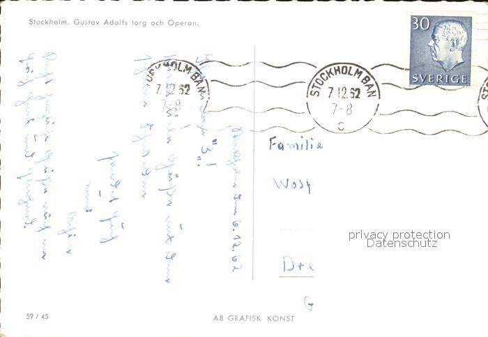 old postcard Stockholm Gustav Adolfs torg och Operan postalisch gelaufen Erhaltung siehe scans