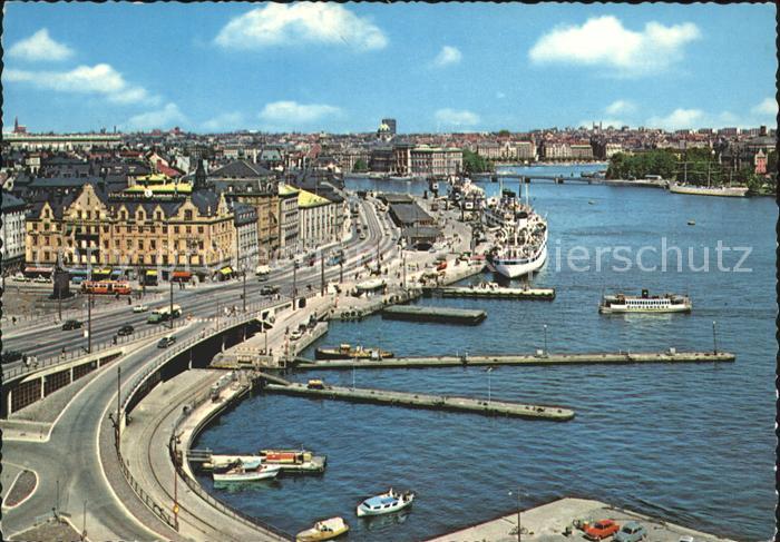 old postcard Stockholm Hafen Quai postalisch gelaufen Erhaltung siehe scans