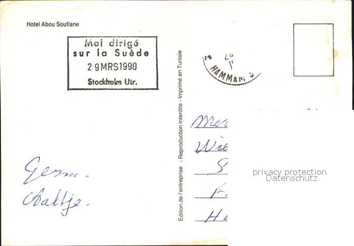 old postcard Stockholm Hotel Abou Soufiane postalisch gelaufen Erhaltung siehe scans