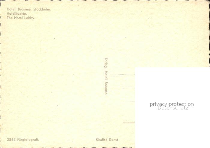 Stockholm Hotel Bromma Lobby postalisch nicht gelaufen Erhaltung siehe scans